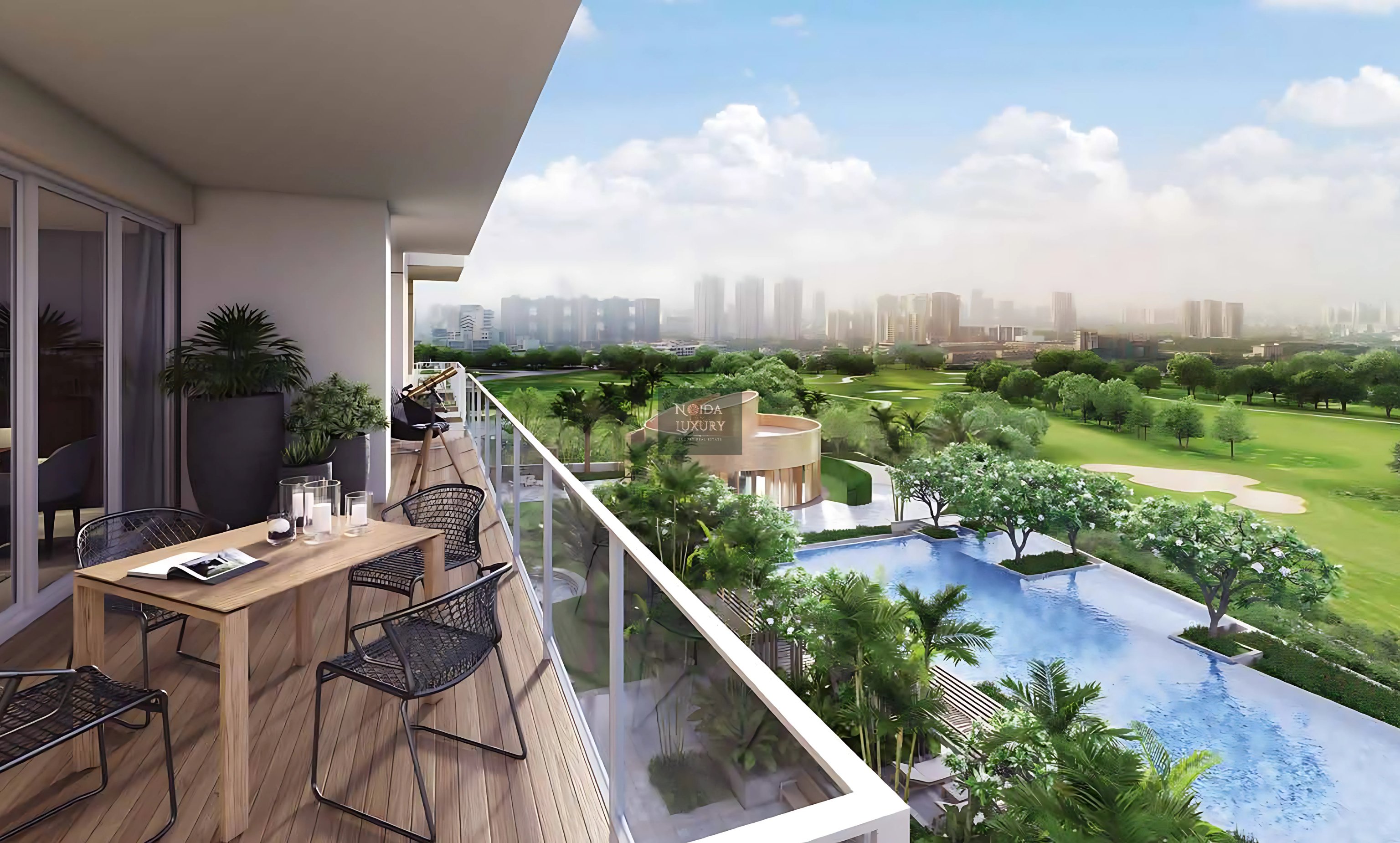 Swimming pool, kids’ pool, tennis & squash courts, golf course views.